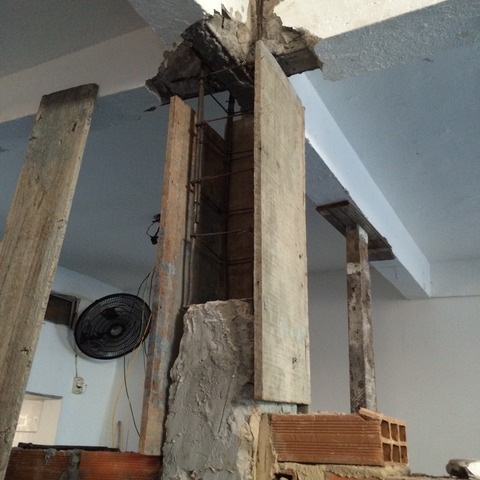 柱のなかったスペースに二本、新たに柱を立てるのですから、大工事です。